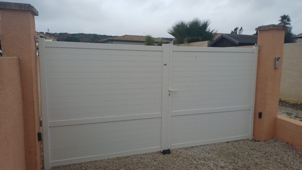 A Lézignan la Cèbe, remplacement de cet automatisme de portail deux battants.