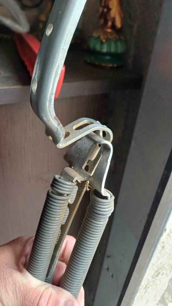 Le support des ressorts de compensation est cassé. Soudure du support et remise en tension des ressorts.