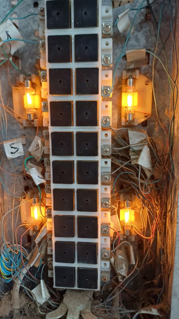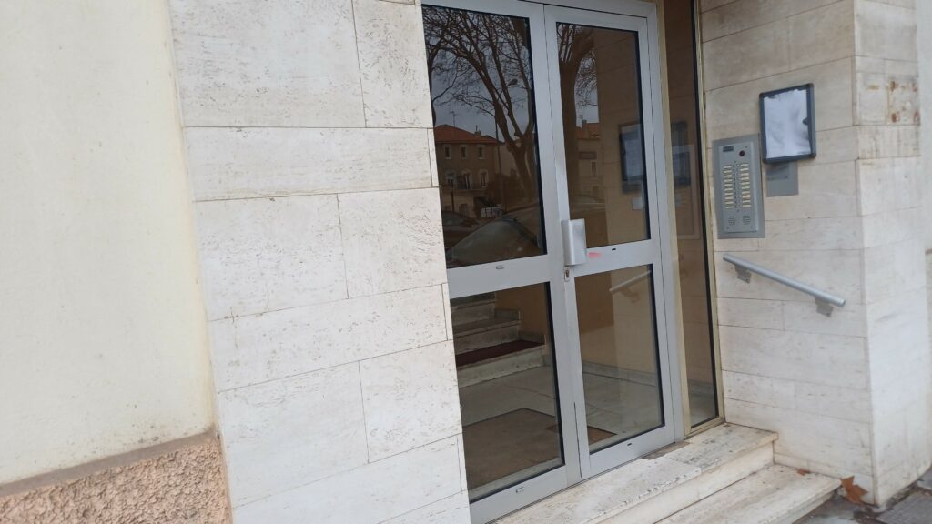 Interphone de copropriété. A Narbonne, remplacement des ampoules du rétro-éclairage de l’interphone. Sans ce rétro-éclairage, la nuit, il est impossible de voir les noms.
