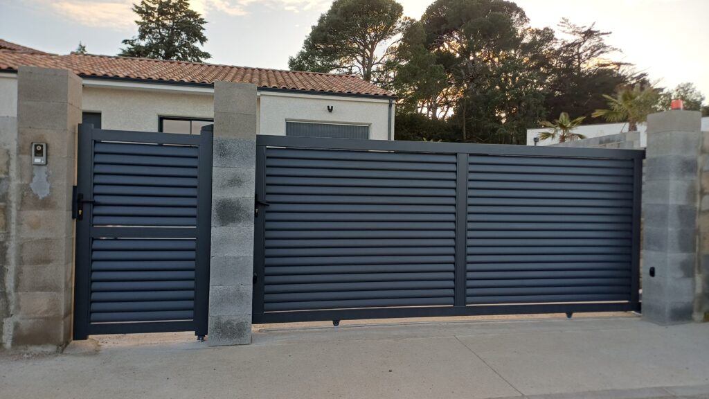 A Carcassonne, pose d’un portail. Avec mise en place d’un visiophone sur le portillon et d’une motorisation de portail.