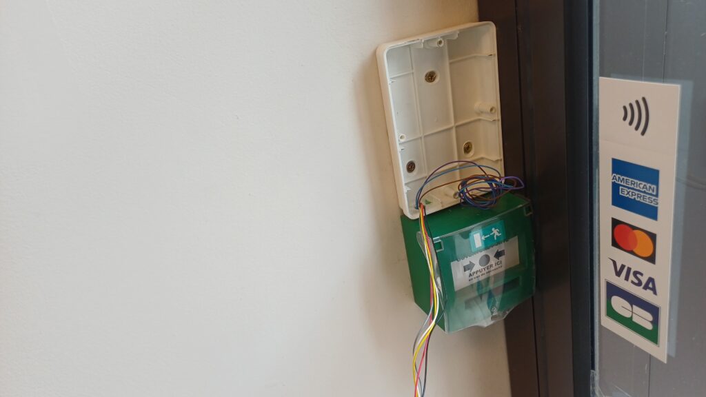 A Narbonne, cette porte piétonne a son boitier de sélection des différents modes qui fonctionne de façon aléatoire.