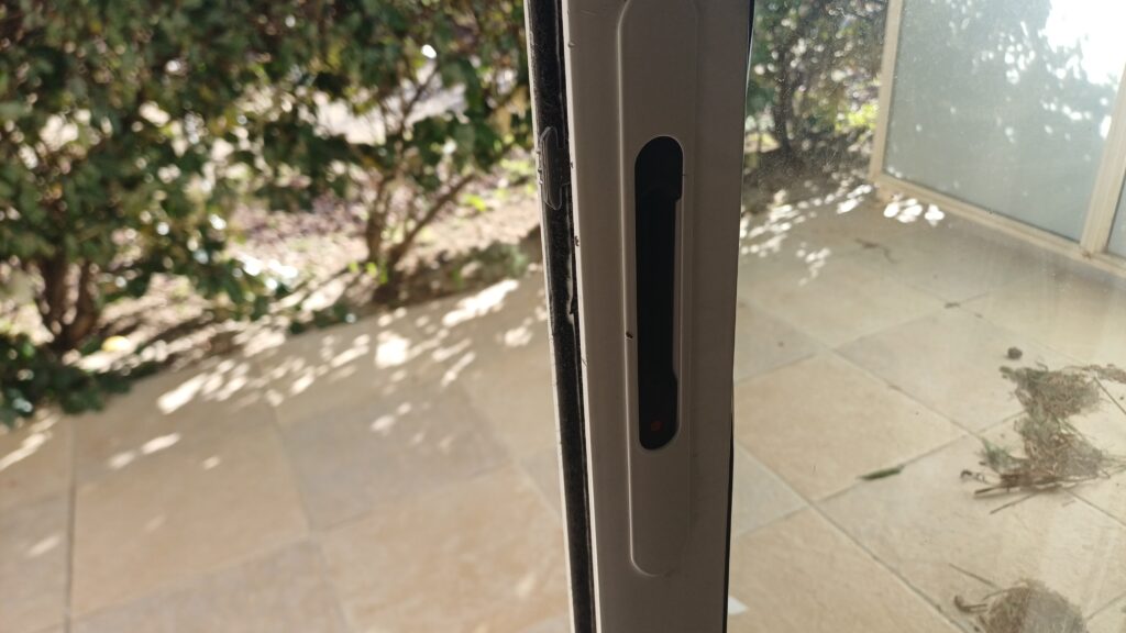 Serrure de baie vitrée. A Gruissan, proche de Narbonne, dans cette résidence estivale, dépannage d’une baie vitrée.