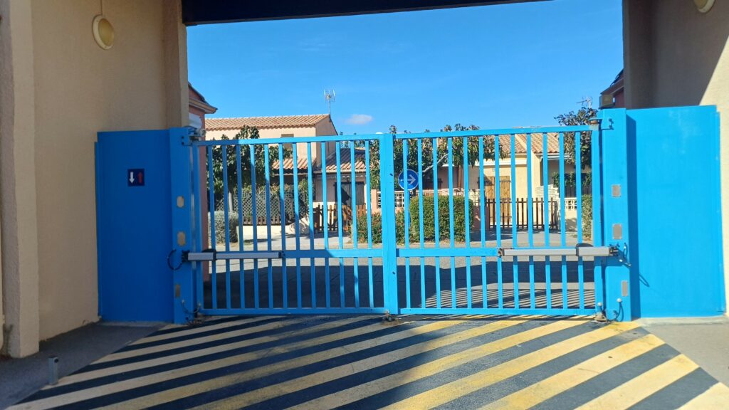 Remplacement d’un vérin hydraulique de portail dans une copropriété à Gruissan, à côté de Narbonne.