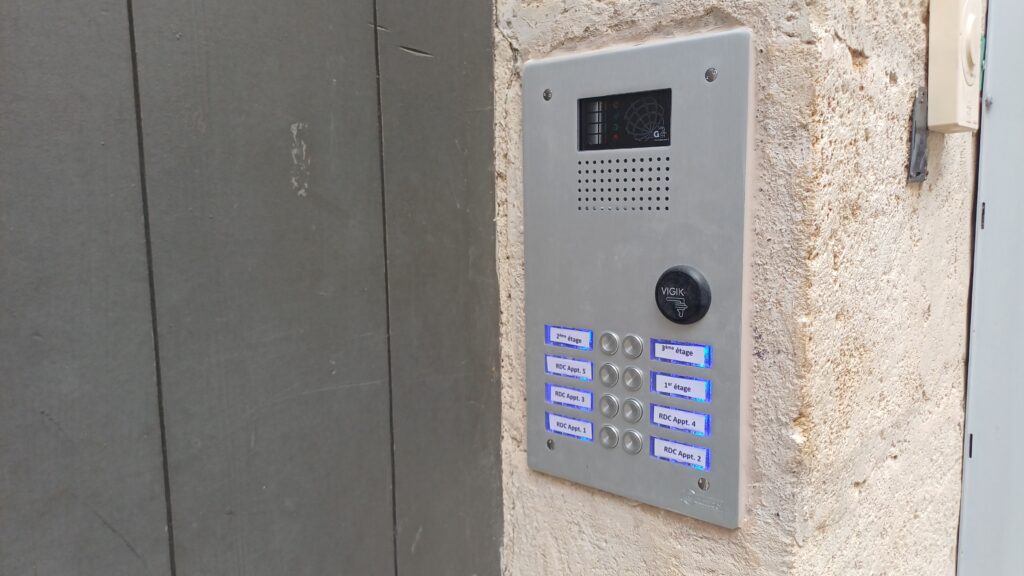 Dans une résidence de Narbonne, ouverture de l’accès à l’immeuble par digicode et ventouse magnétique.