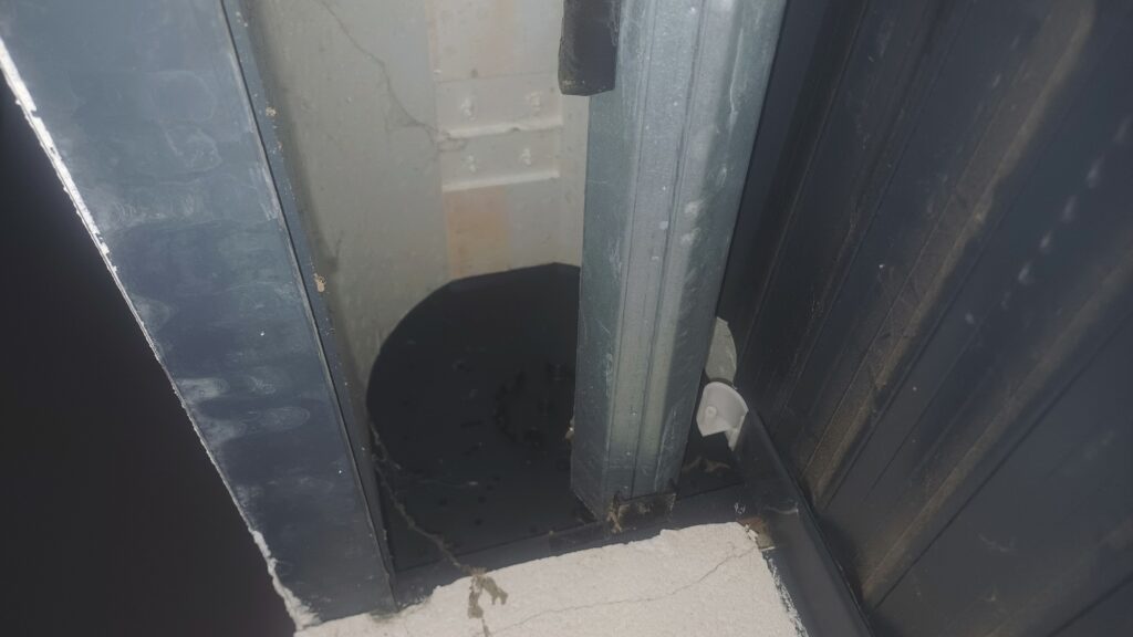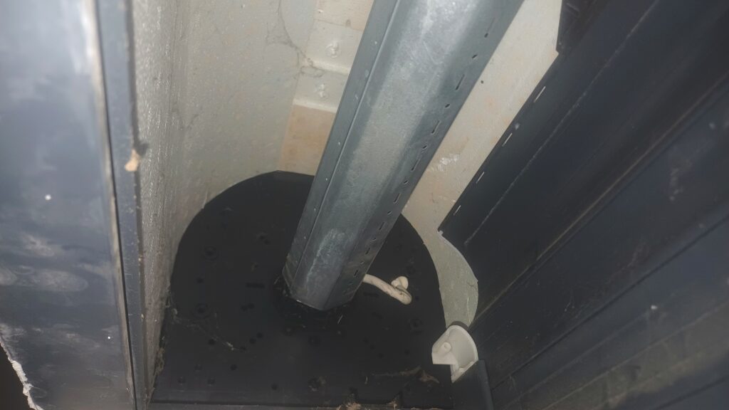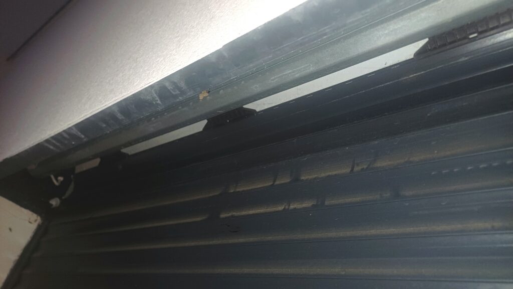 A Narbonne, intervention sur ce volet roulant en panne. L’axe motorisé s’est détaché de son support. Le volet ne peut plus monter.